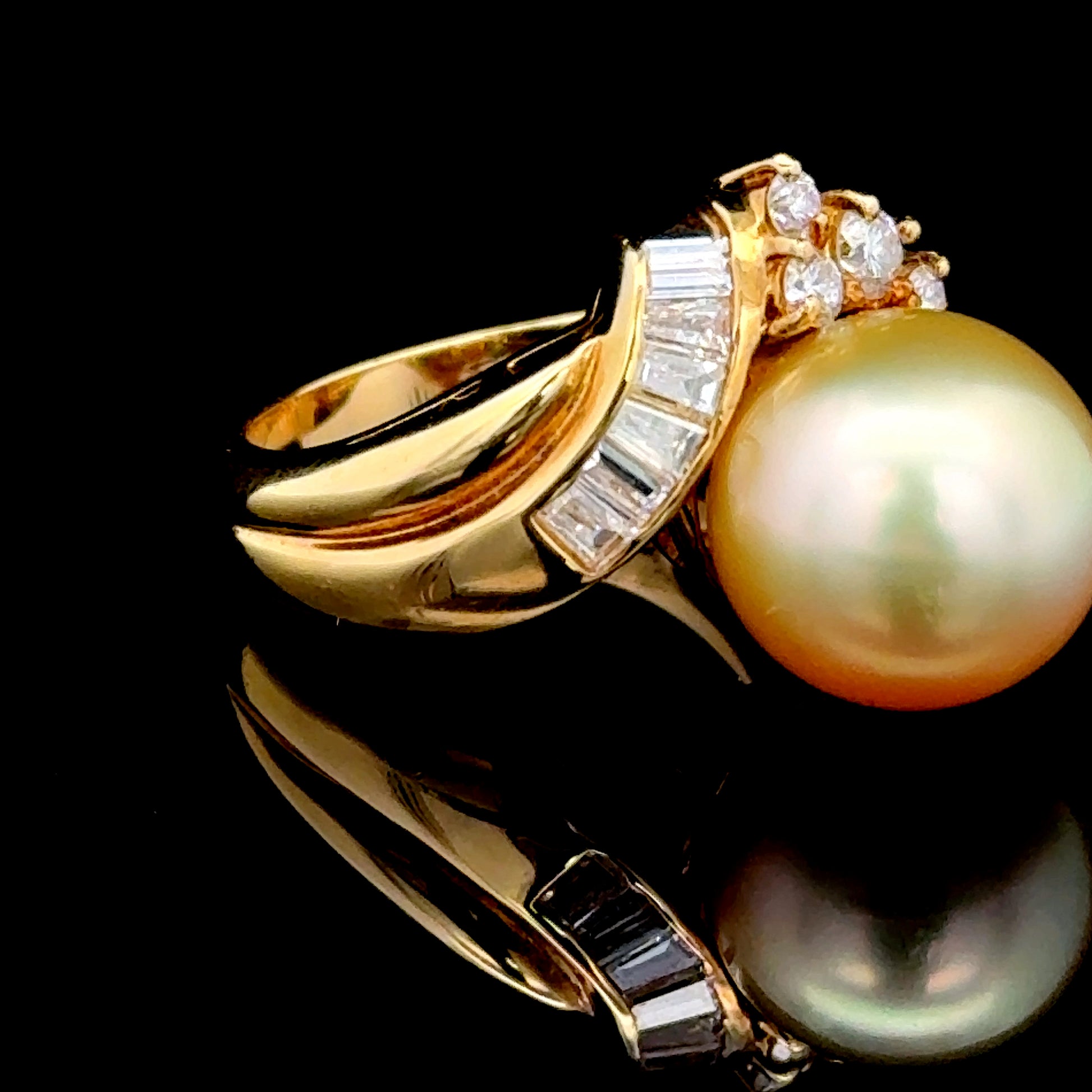 This exquisite 18K yellow gold ring features a lustrous pearl elegantly complemented by approximately 0.75 carats of finely set diamonds. Designed for those with a discerning eye, the piece balances classic sophistication with subtle sparkle, making it a refined choice for special occasions or everyday elegance. Crafted with expert precision, this ring highlights the natural beauty of its materials while ensuring lasting quality and timeless appeal.