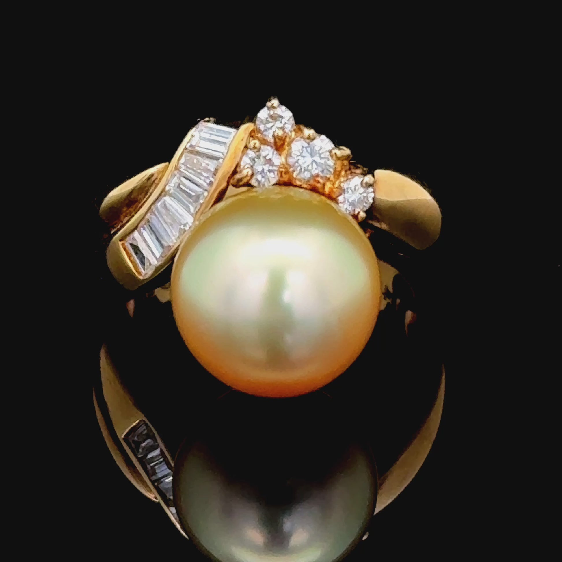 18K Yellow Gold Pearl & Diamond Fancy Ring Approximately 0.75 Carats