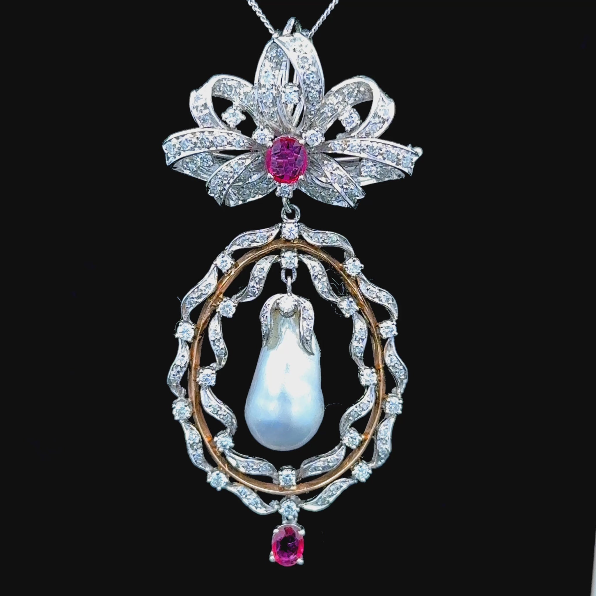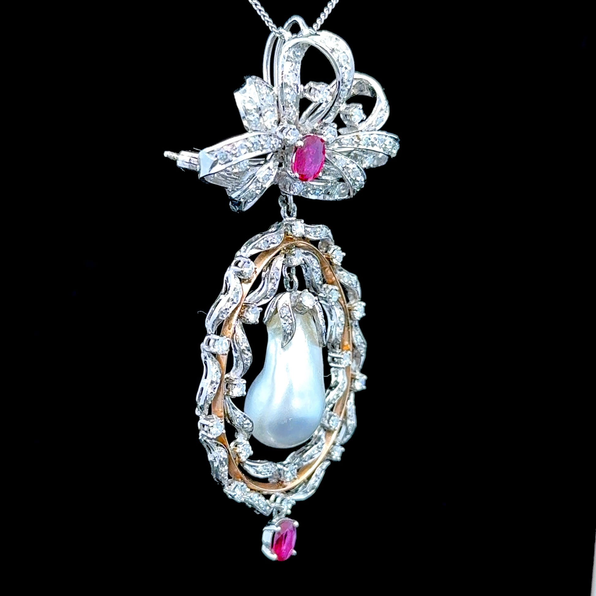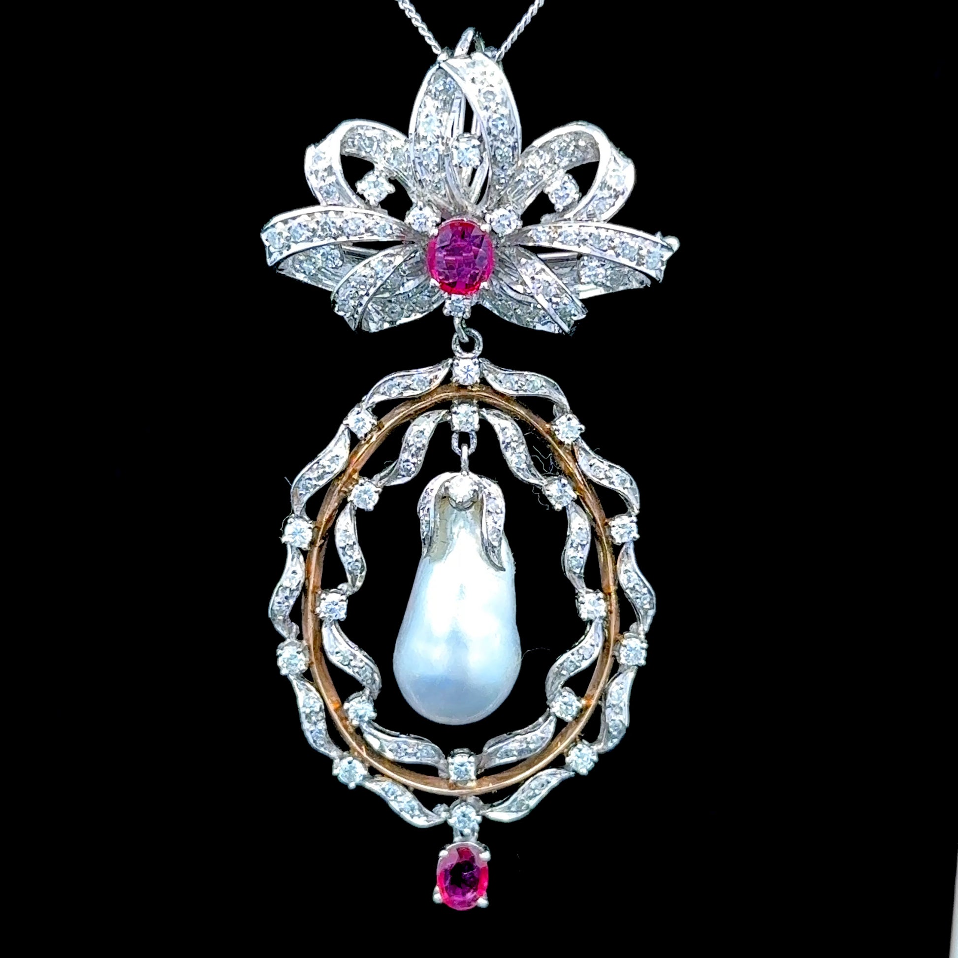 9K White Gold Pearl & Ruby Pendant Approximately 2.5 Carats
