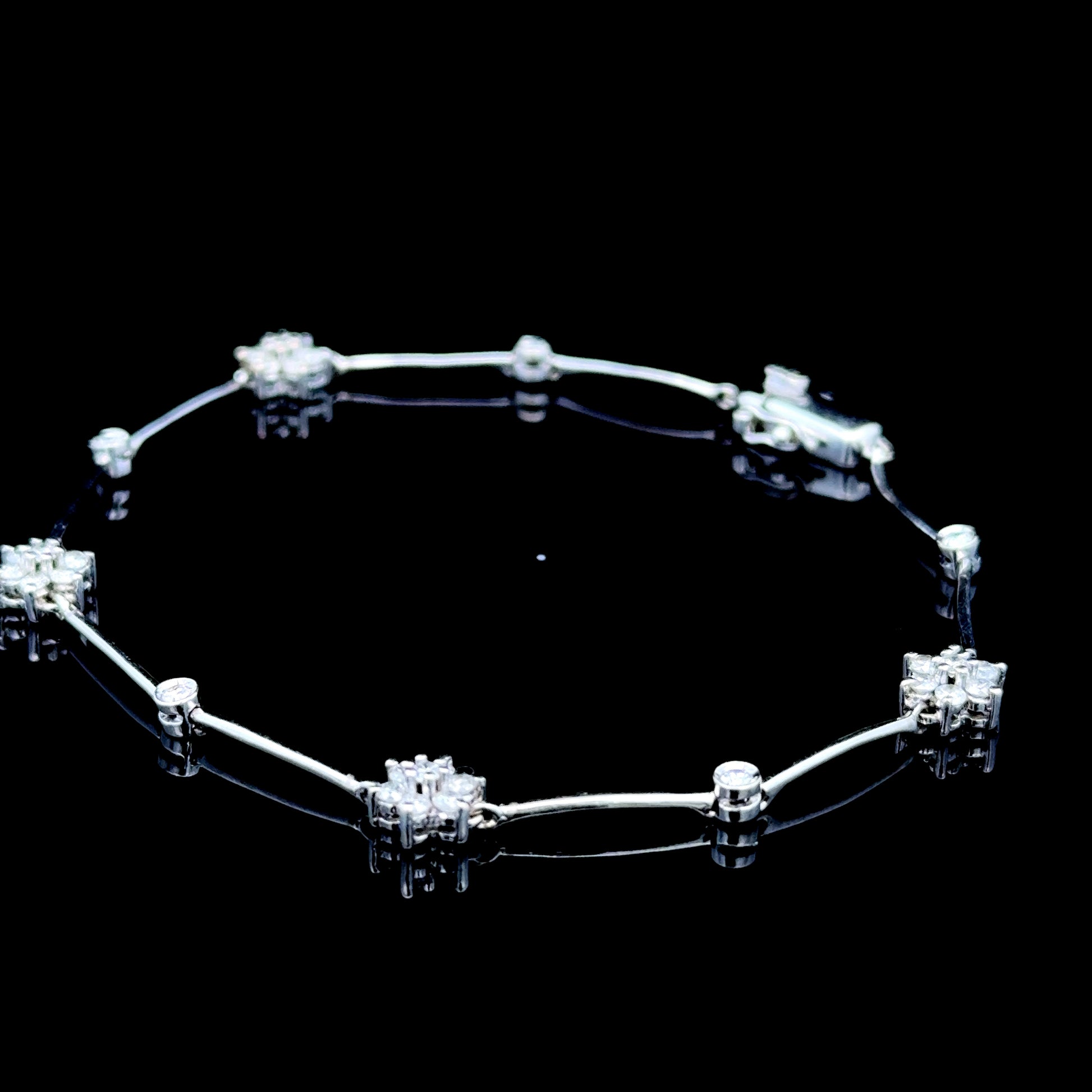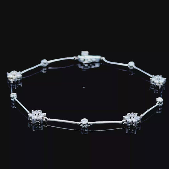 14K White Gold Diamond Daisy Bracelet APPX 1.0 CTS