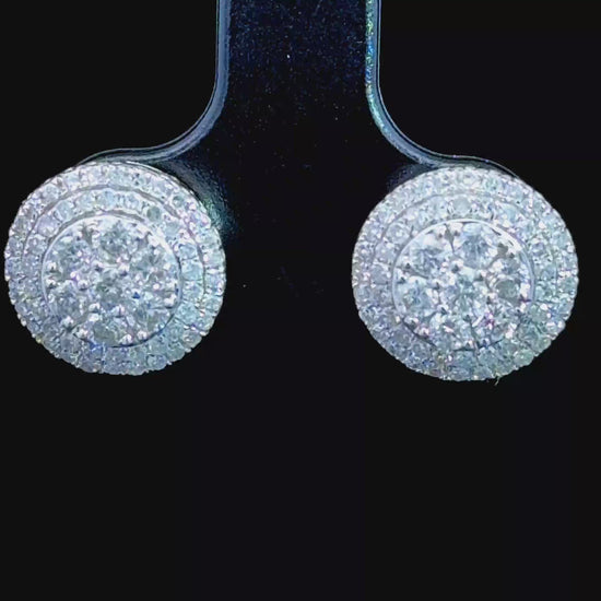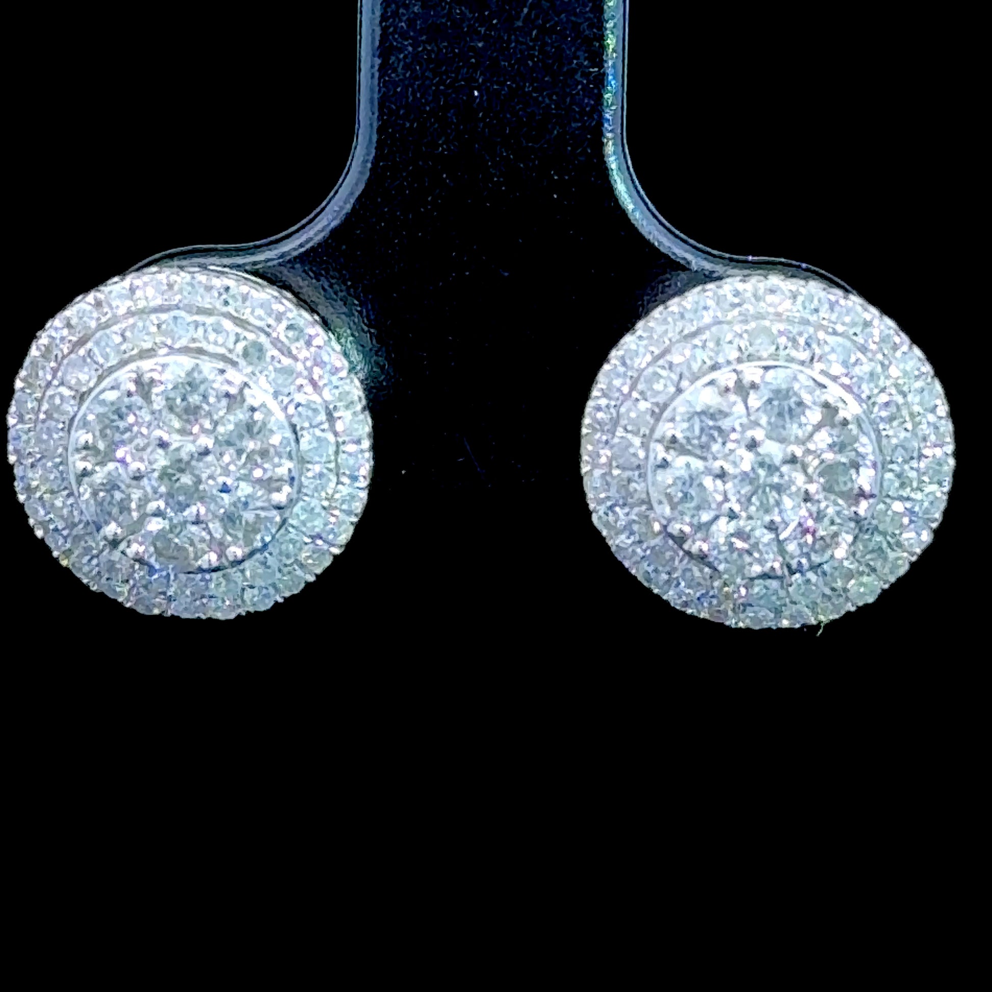 18K White Gold Diamond Cluster Studs 1.0 CTS