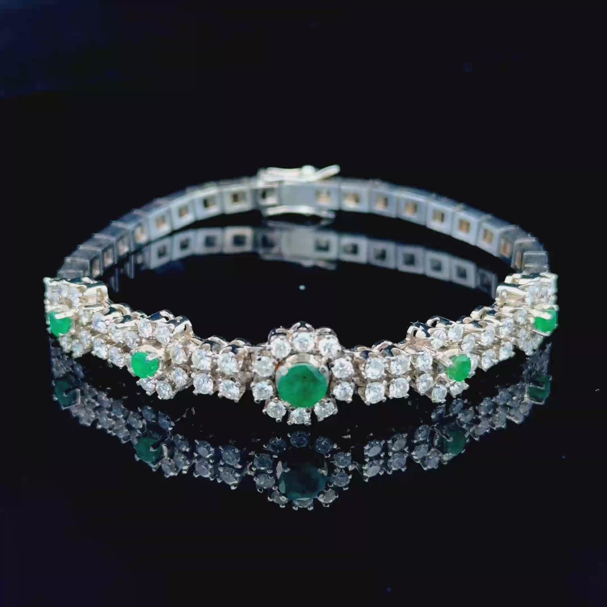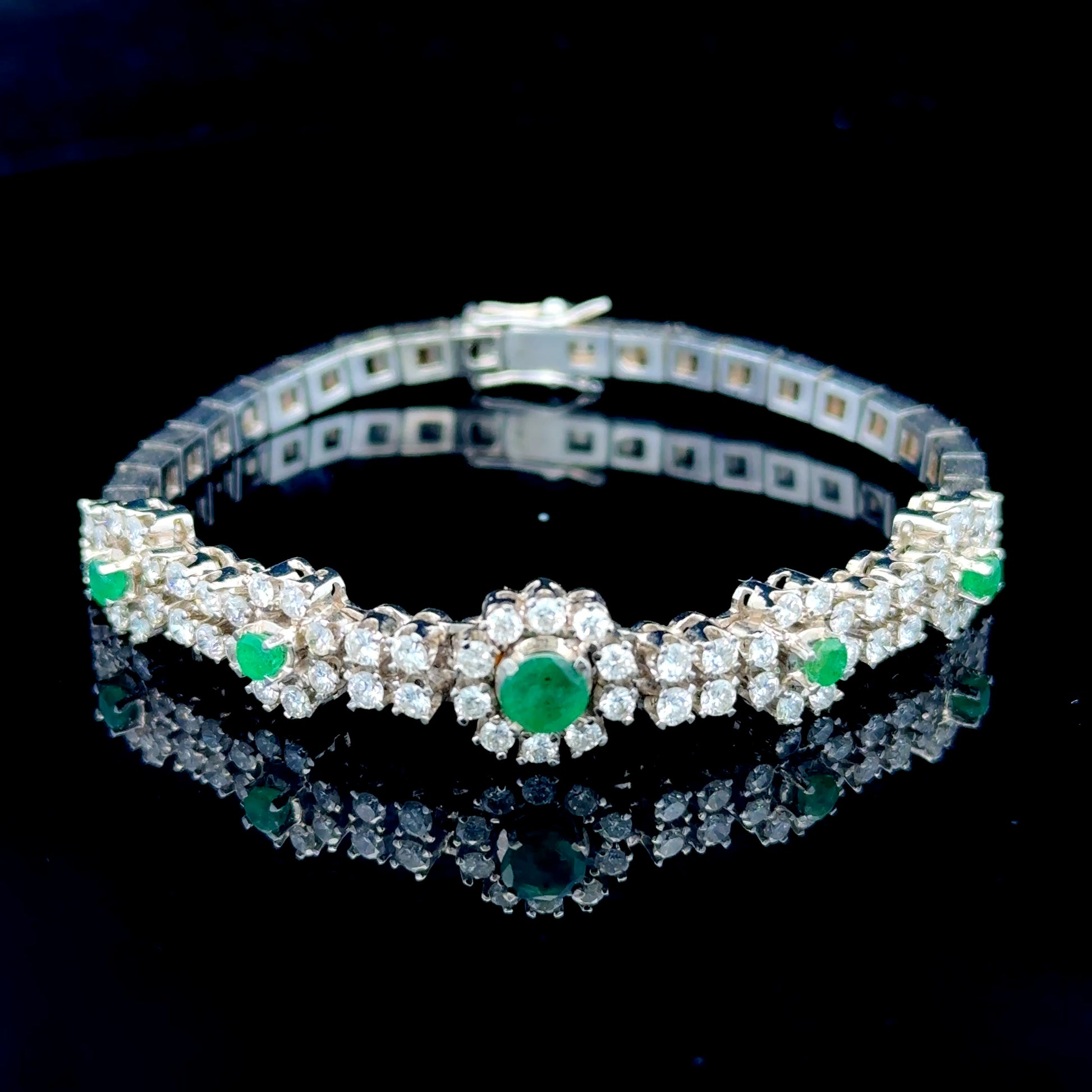 18K White Gold Emerald & Diamond Bracelet APPX 3.2 CTS Diamond, 1.0 CTS Emerald