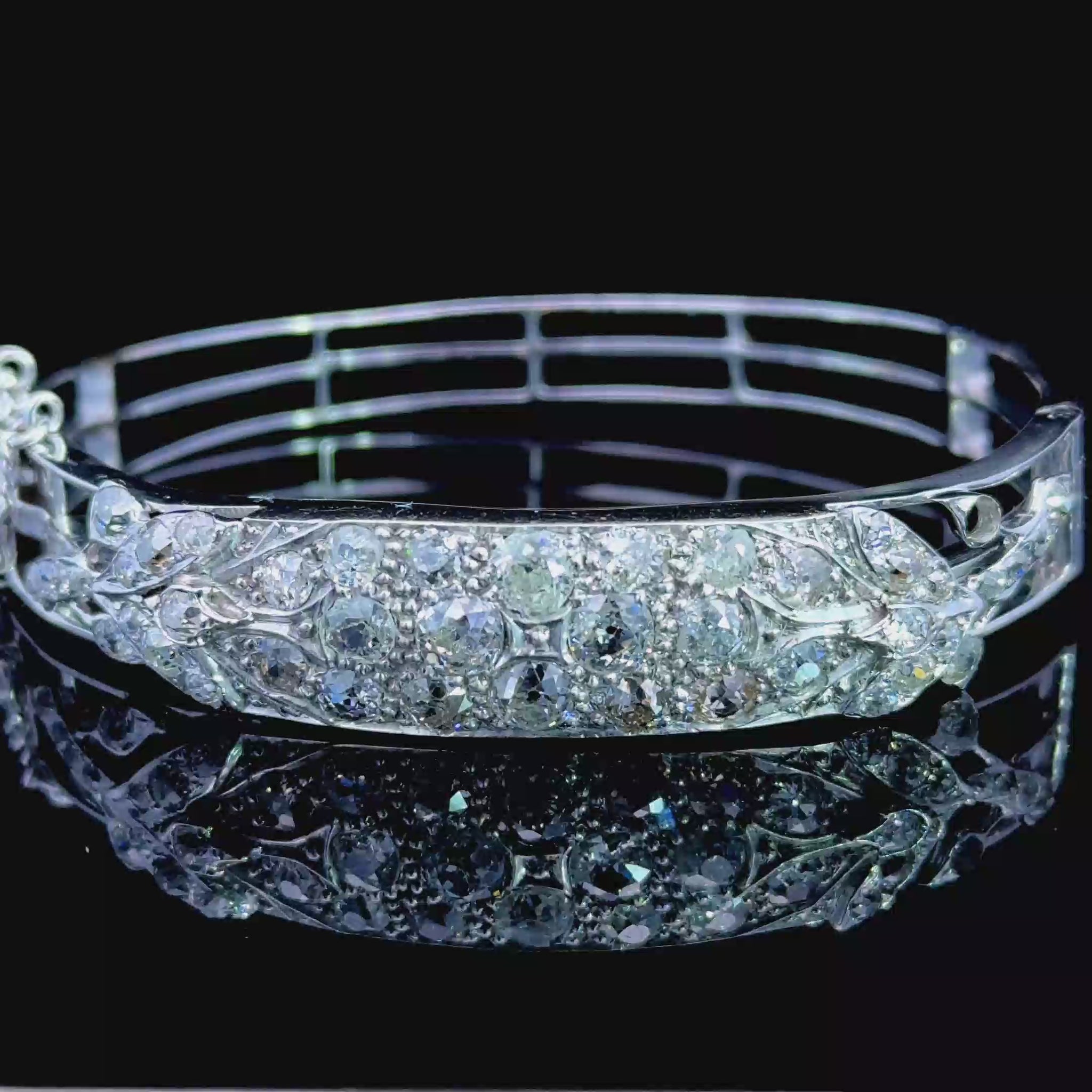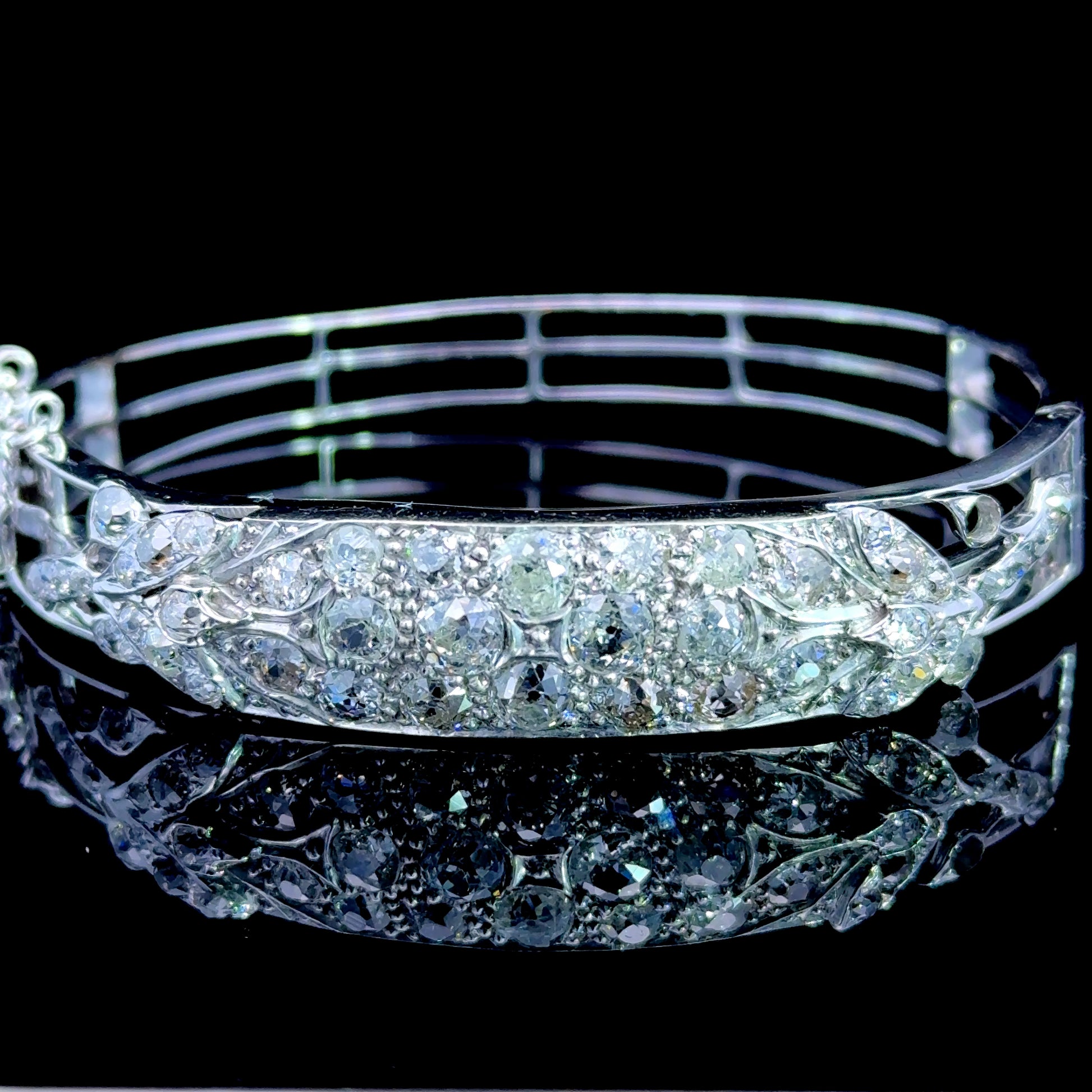 14K White Gold Old Cut Diamond Bangle APPX 4 CTS