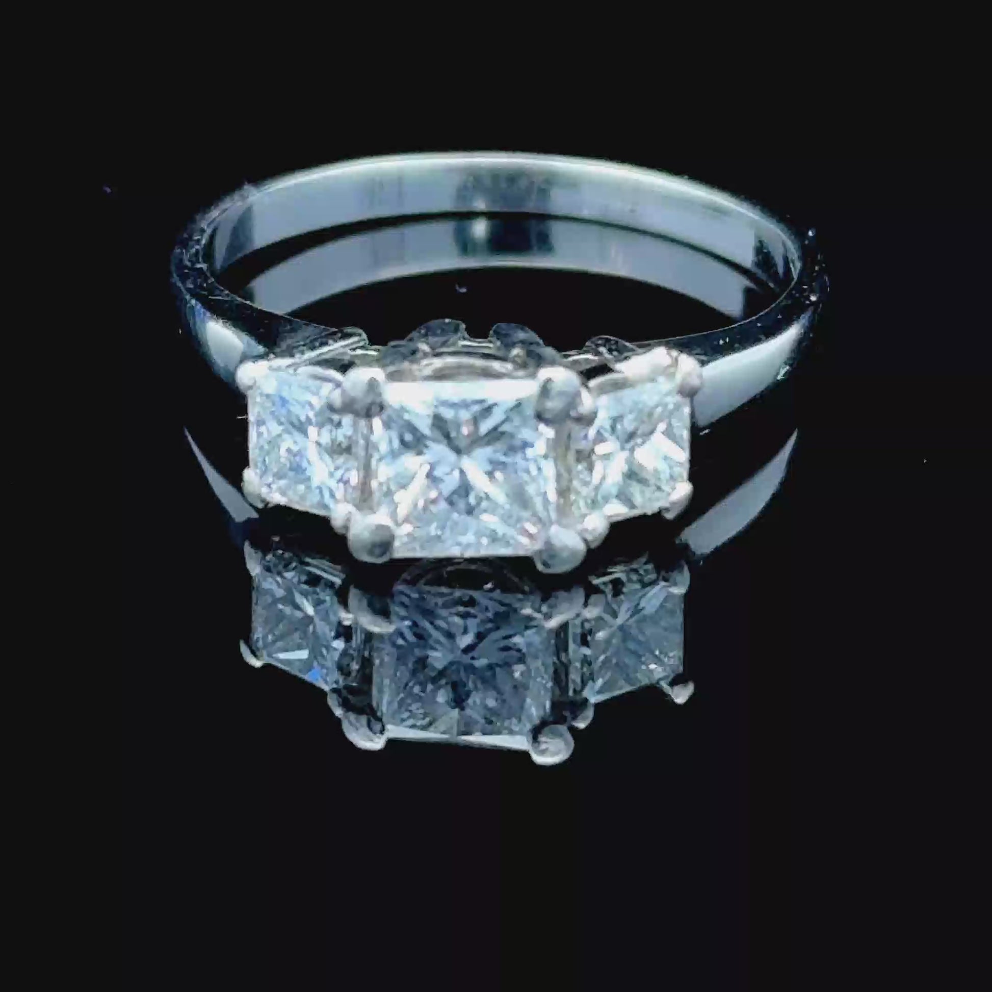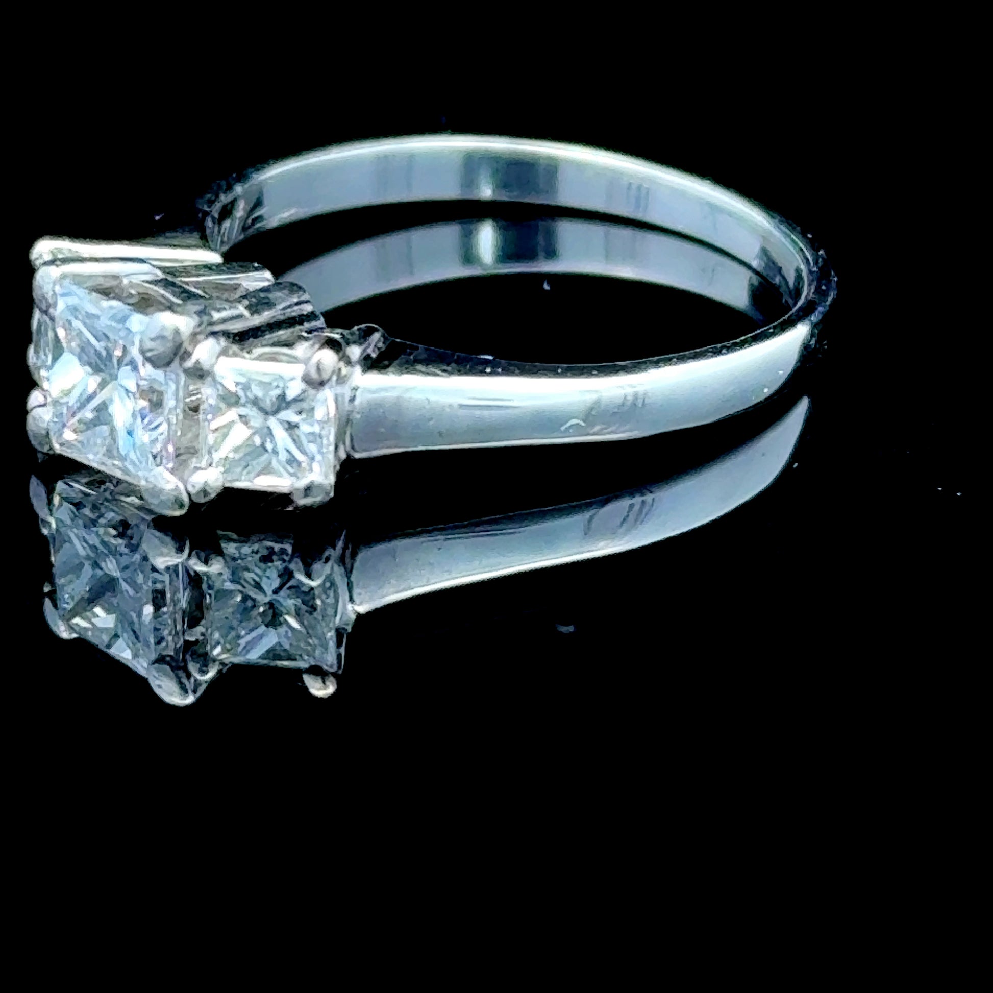 Platinum Princess Diamond Trilogy Ring GIA Cert 0.71 CTS E VS2
