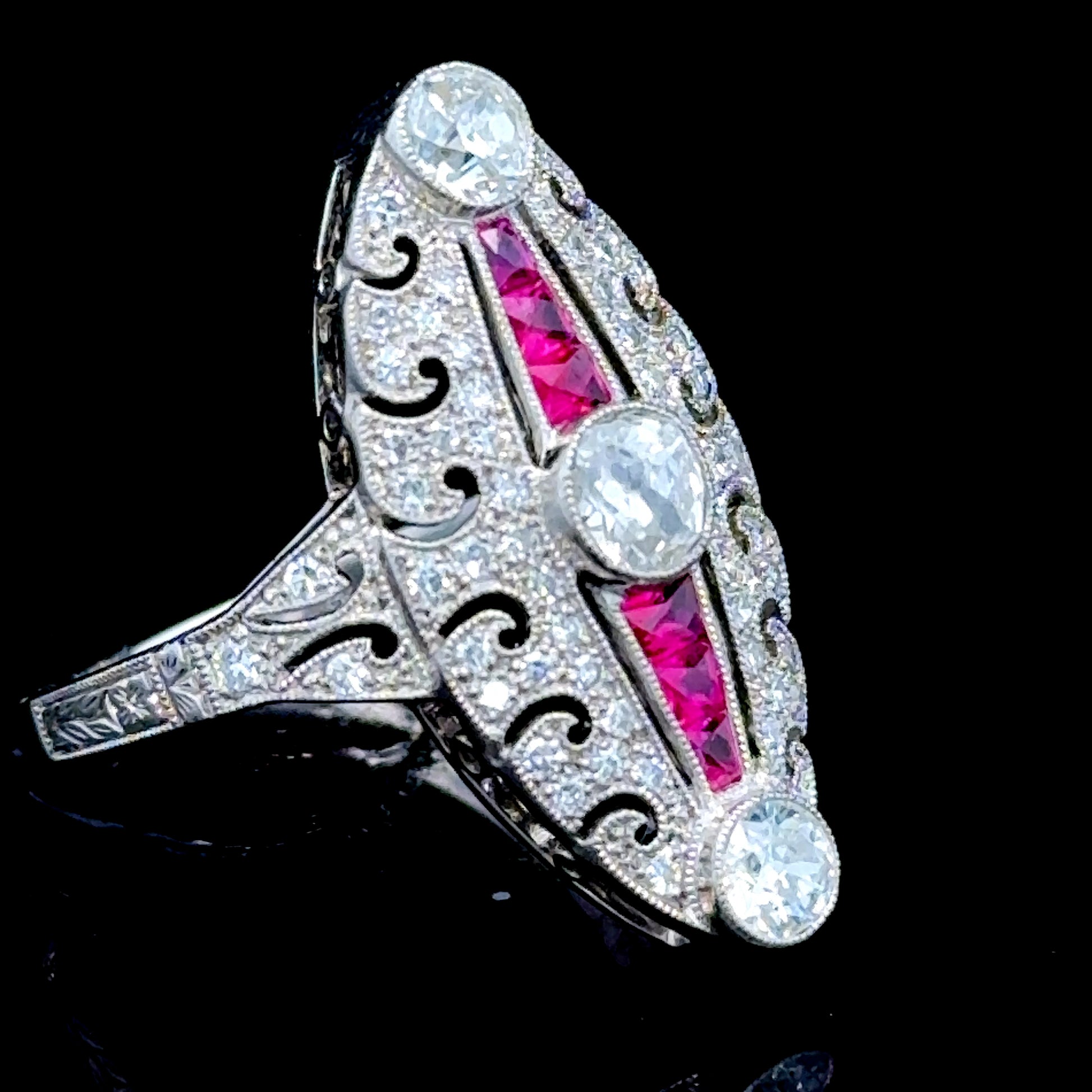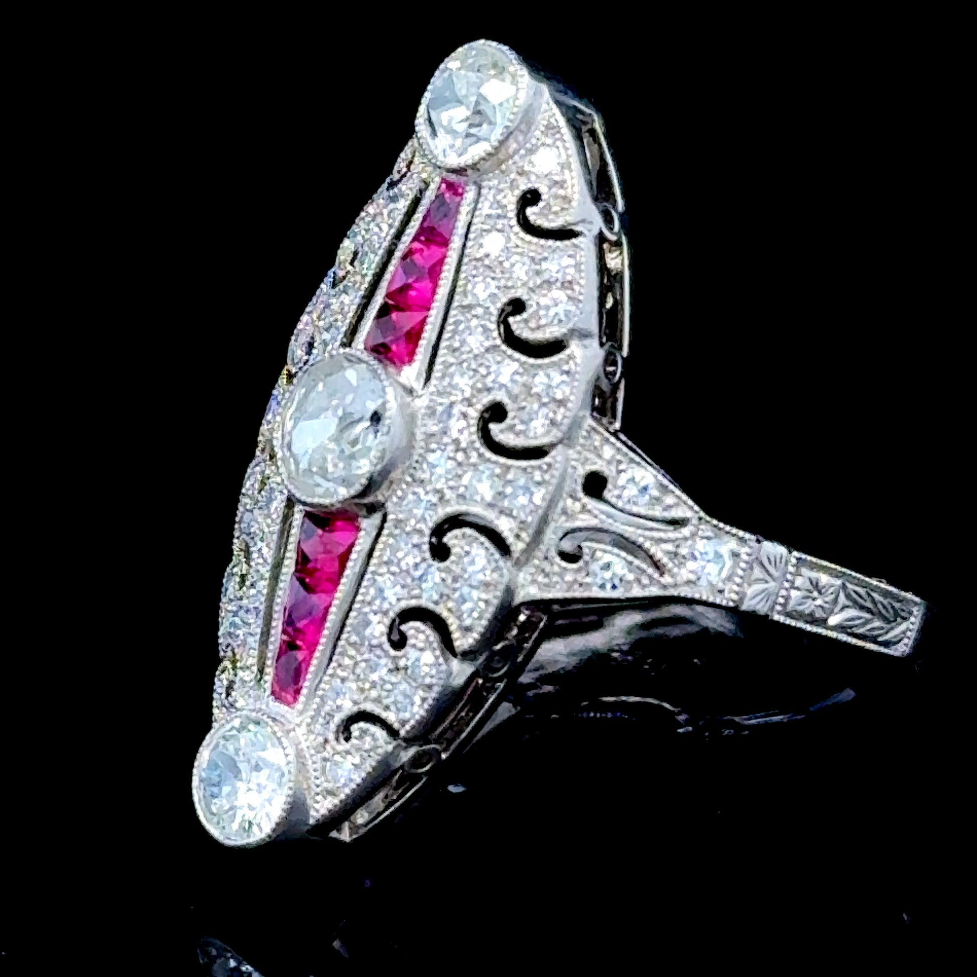 Platinum Ruby & Diamond Deco Style Cocktail Ring Size M