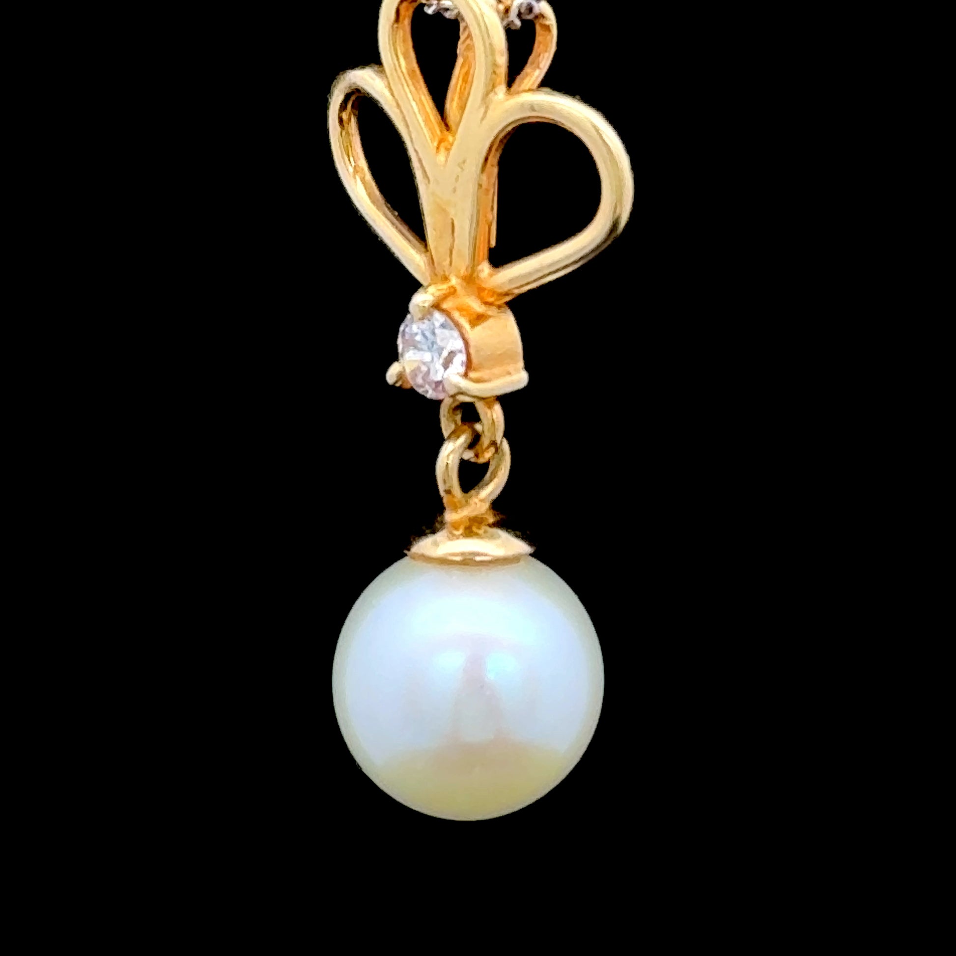 18K Gold Pendant with Round Pearl and Brilliant Diamond Accent