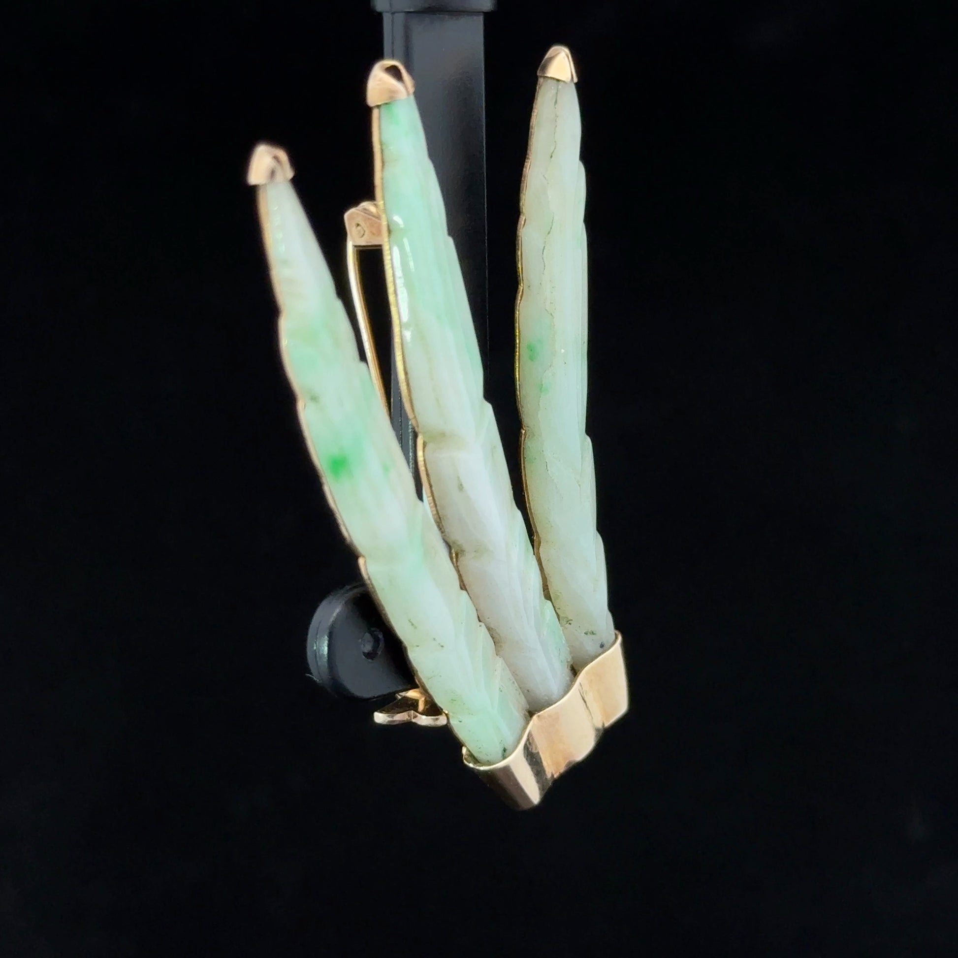 9K Yellow Gold Jade Brooch