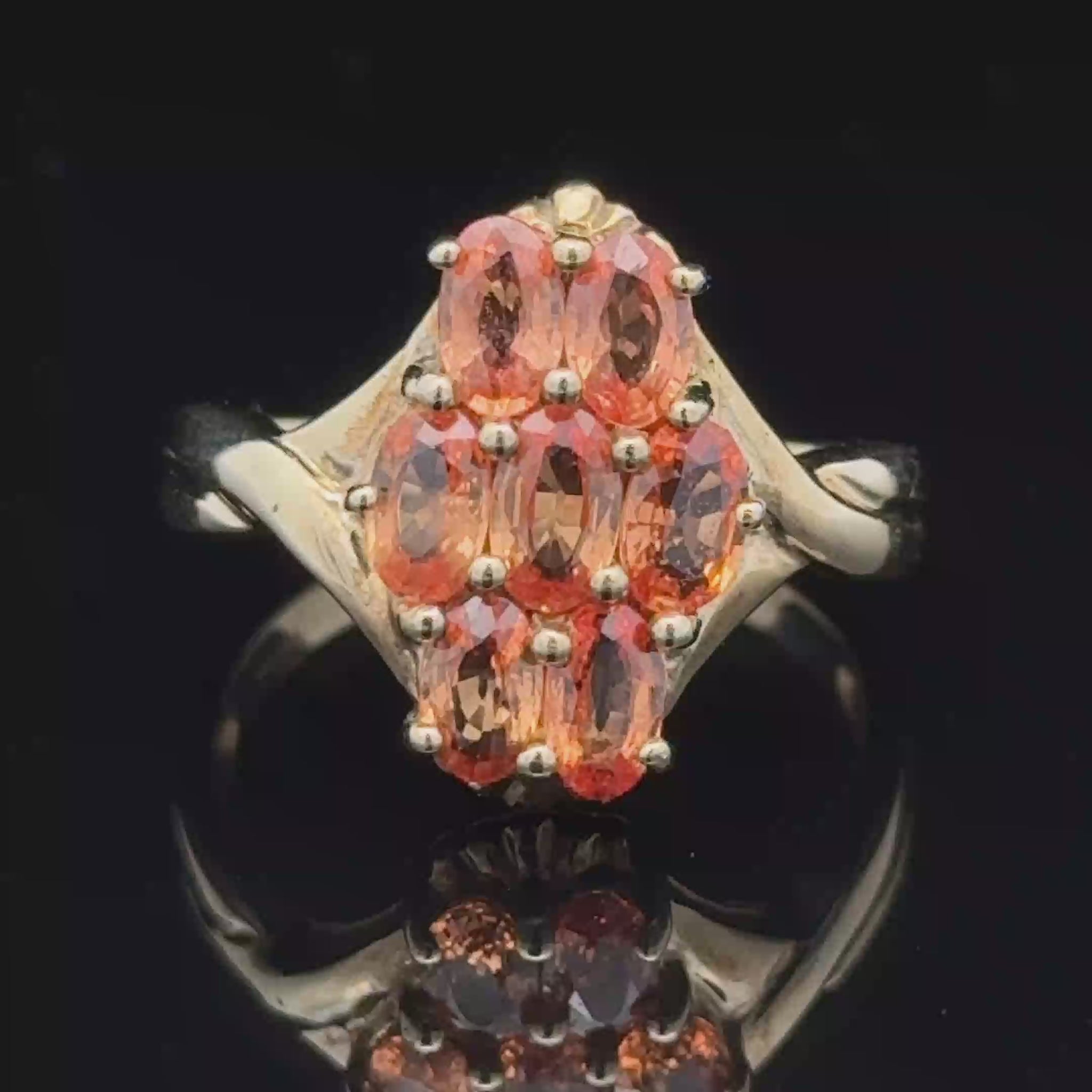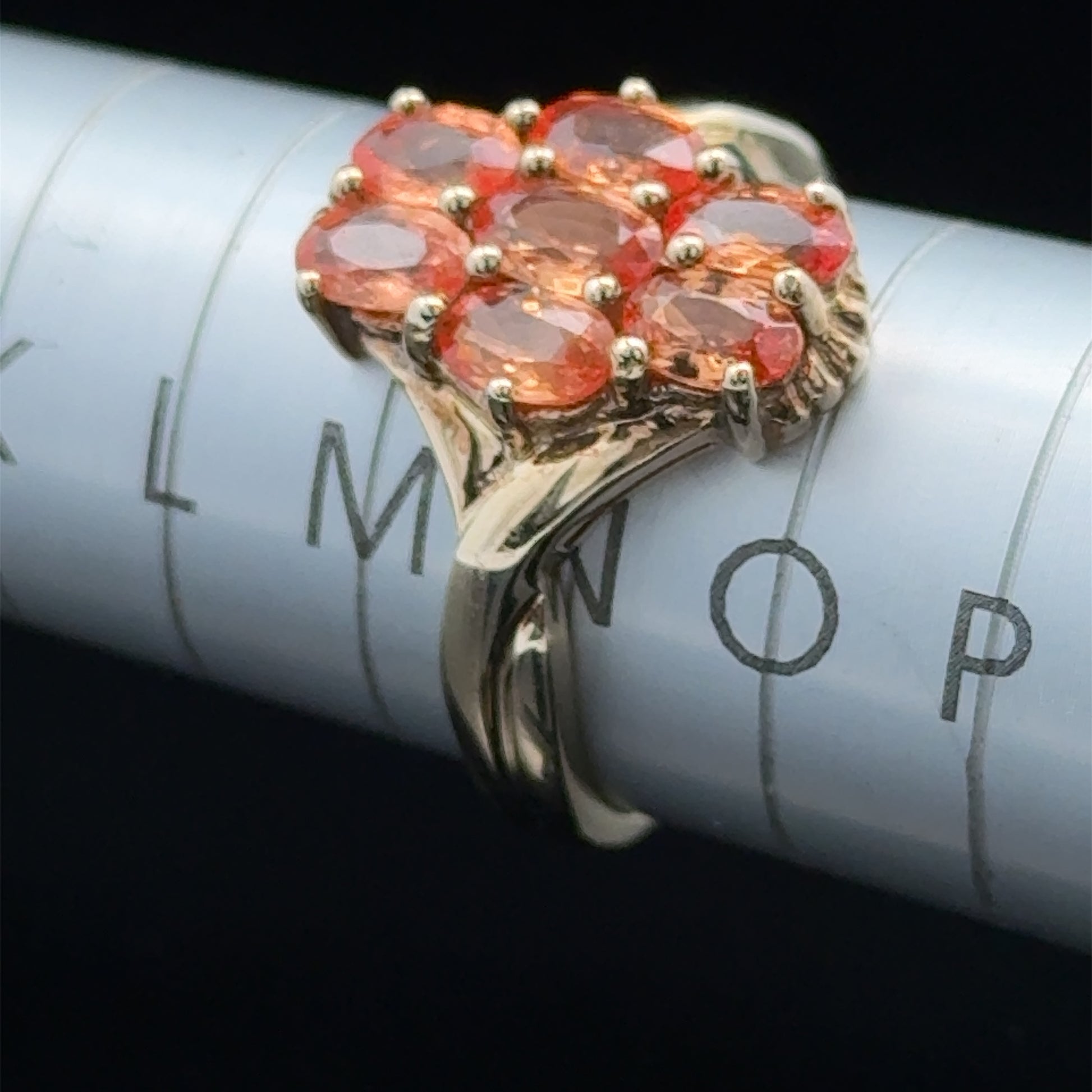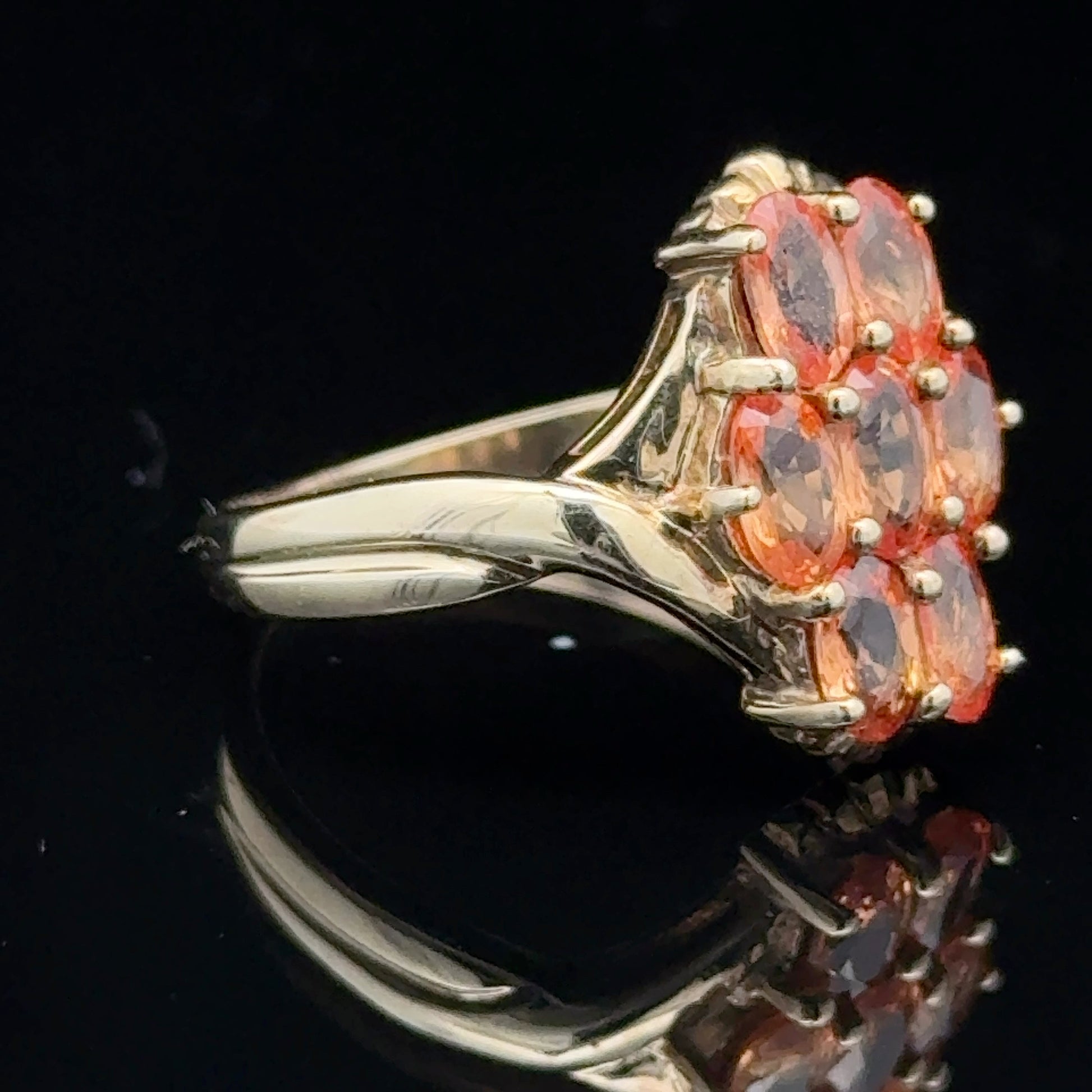9K Yellow Gold Ring 7 Stone Orange Sapphire Cluster