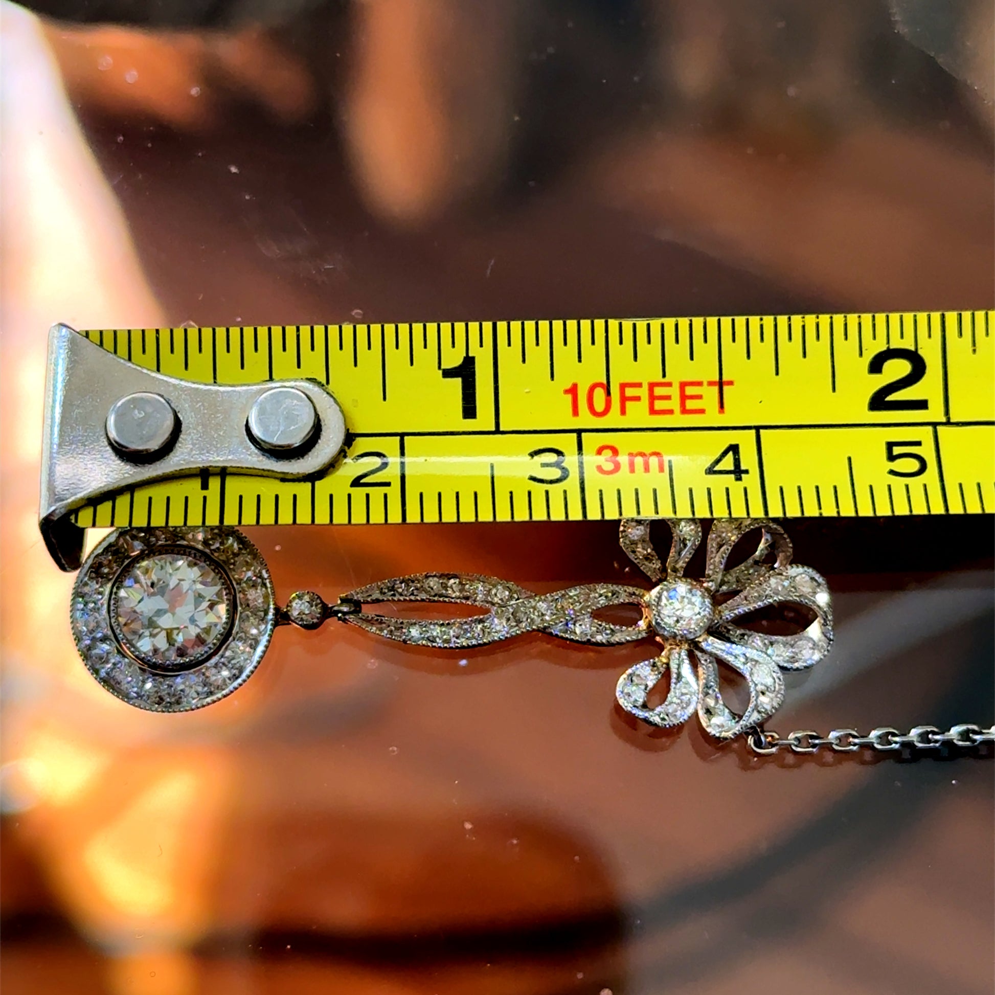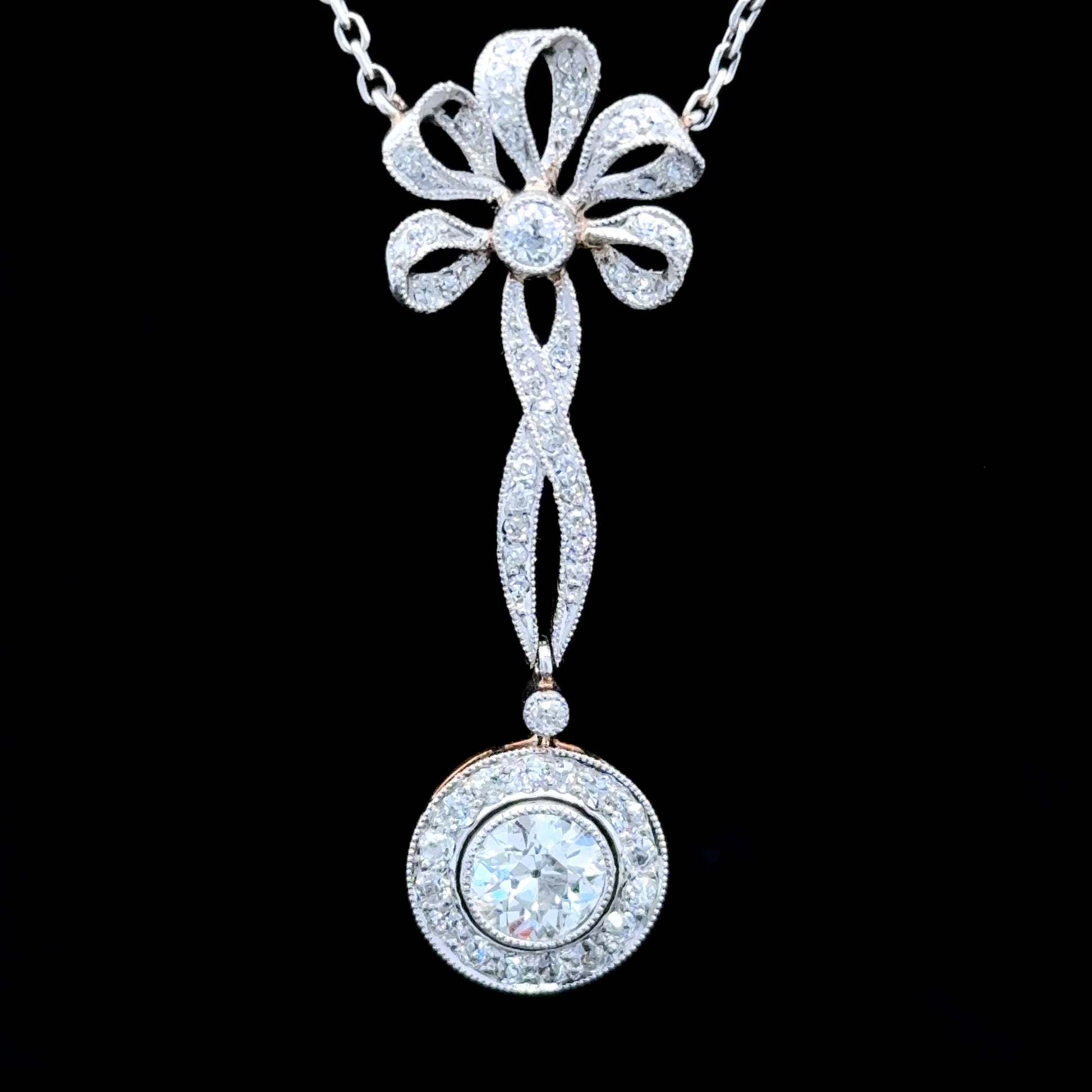 18K White Gold Diamond Bow Pendant & Chain APPX 2 CTS