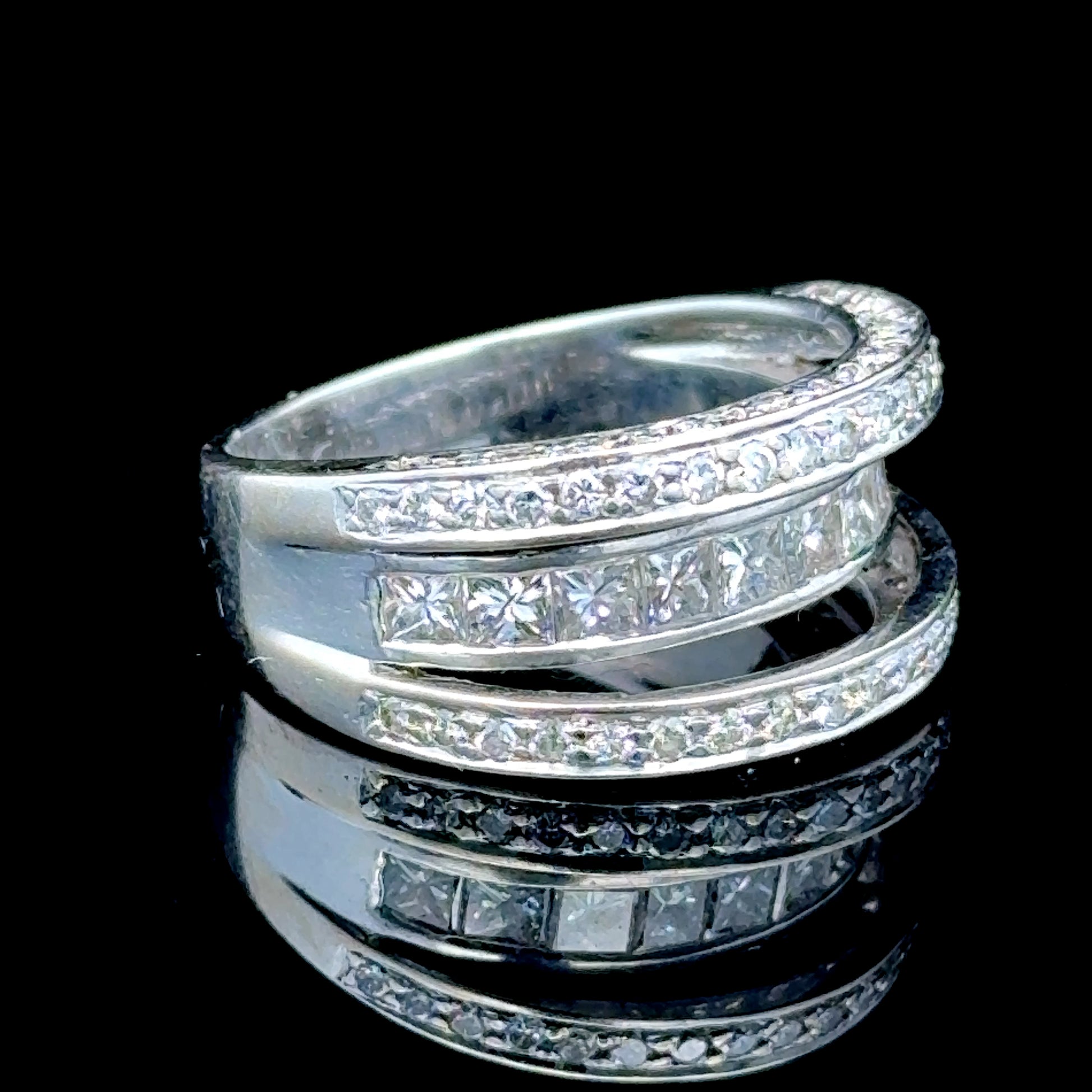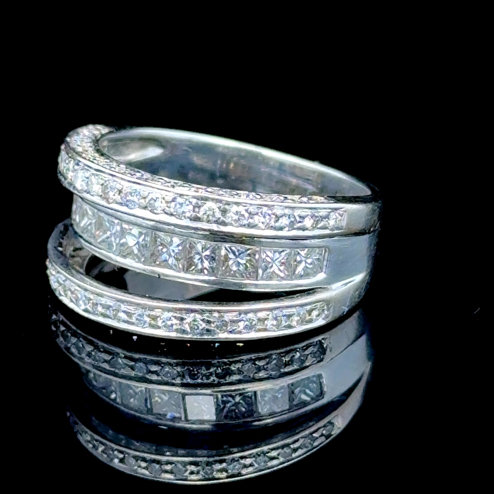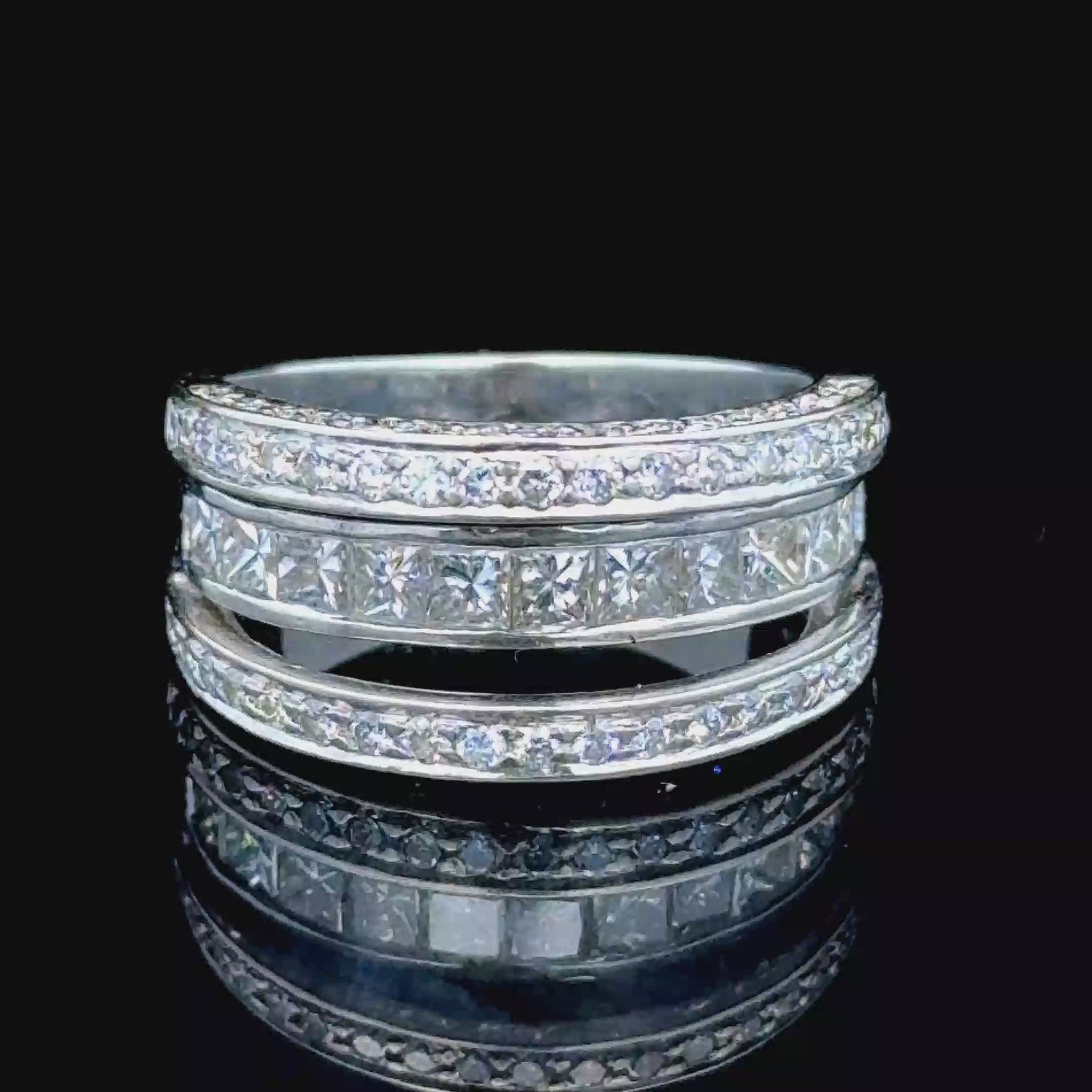 18K White Gold Triple Diamond Band Princess Diamonds To Centre Band