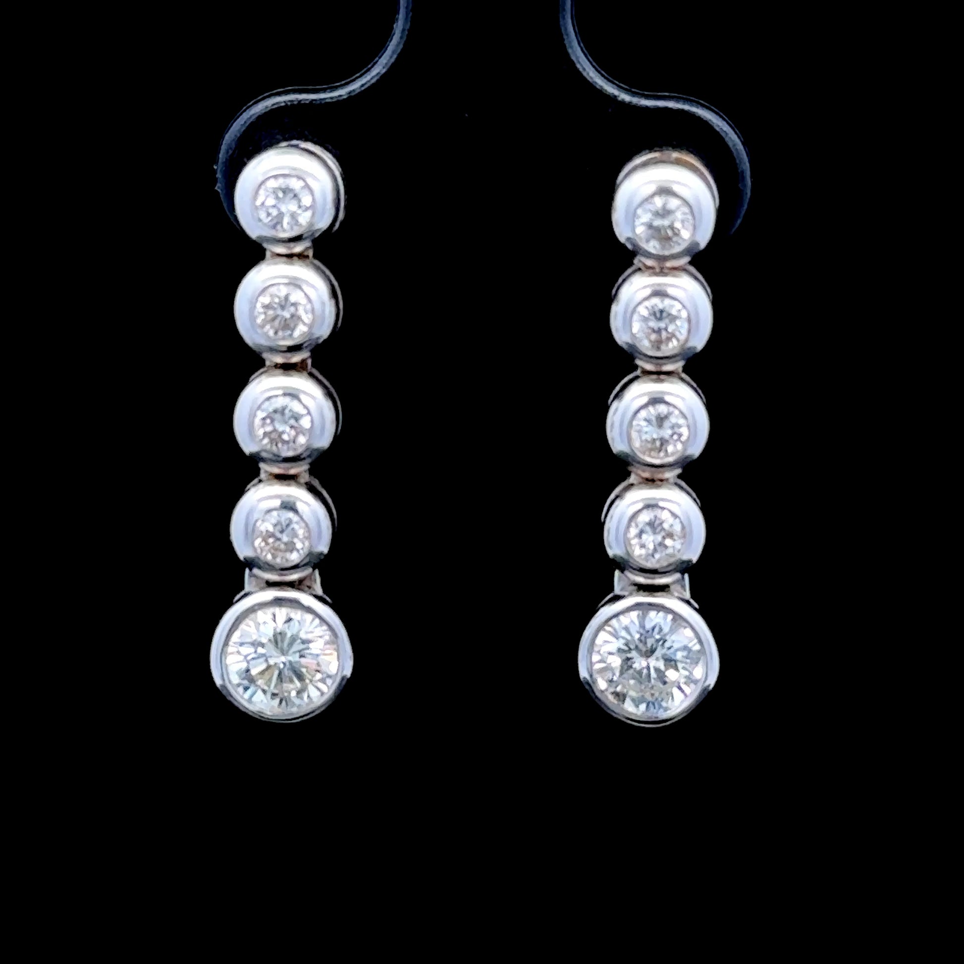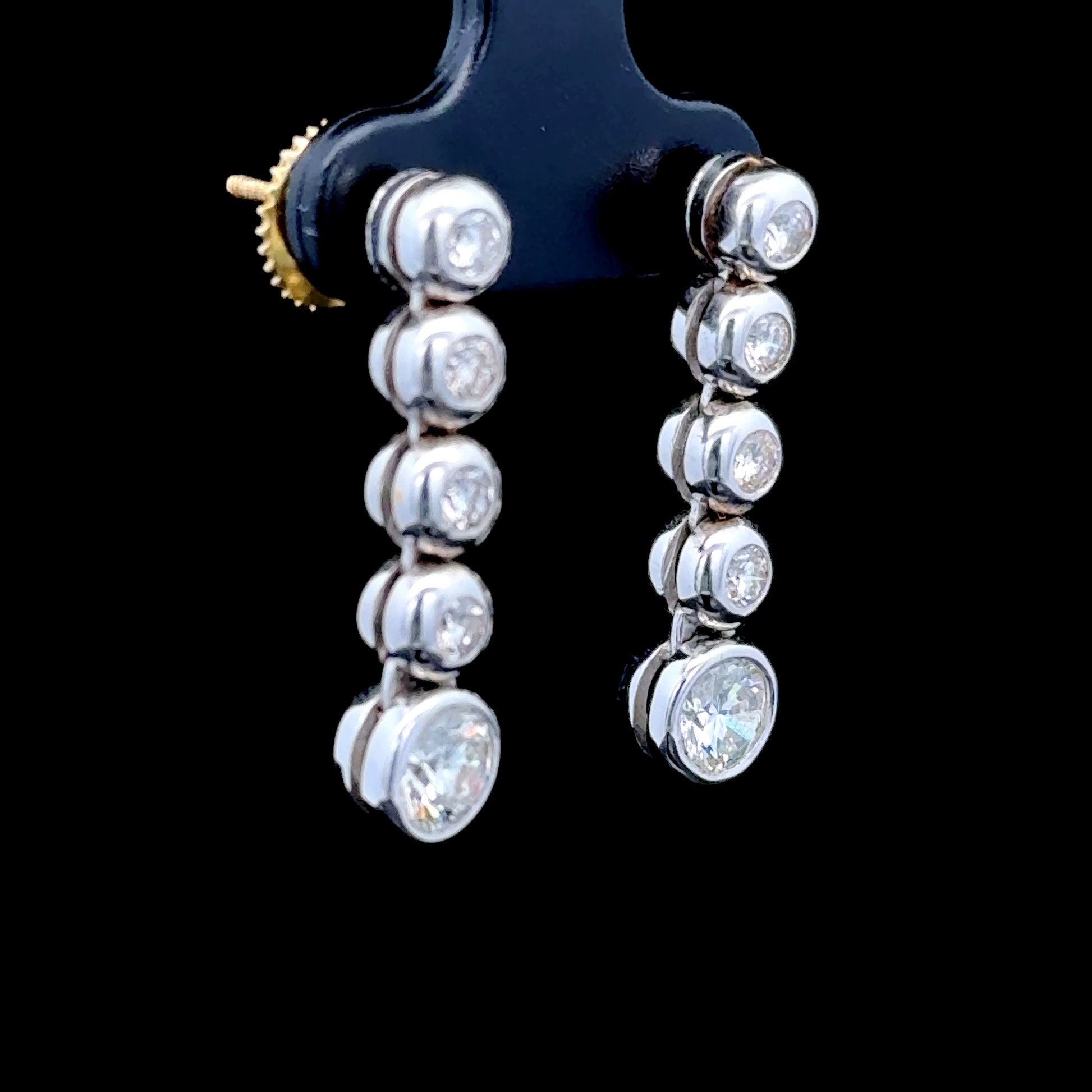 18K White Gold Bezel Set 5 Stone Diamond Earrings APPX 1.8 CTS