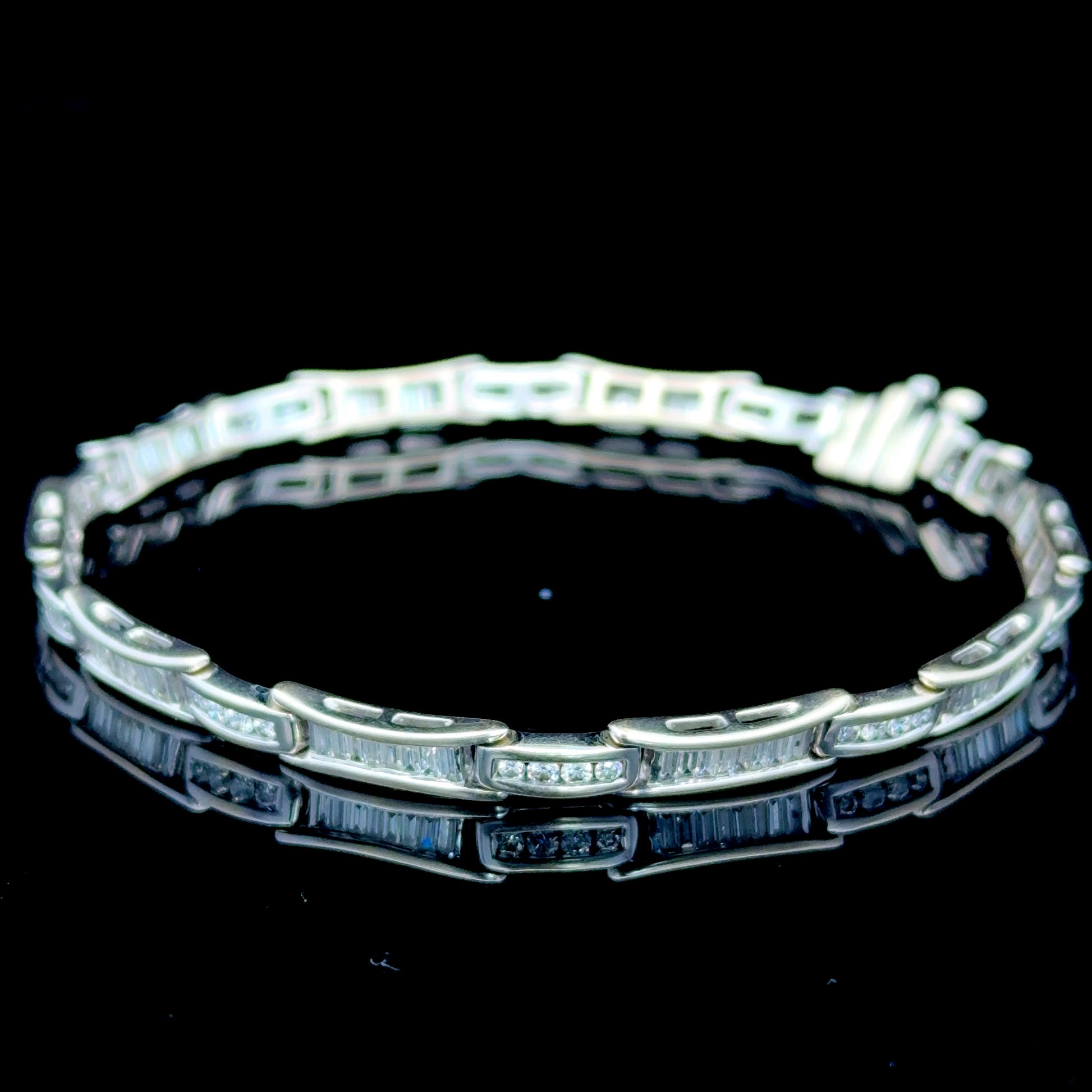 18K White Gold Baguette & Round Diamond Bracelet APPX 2.5 CTS