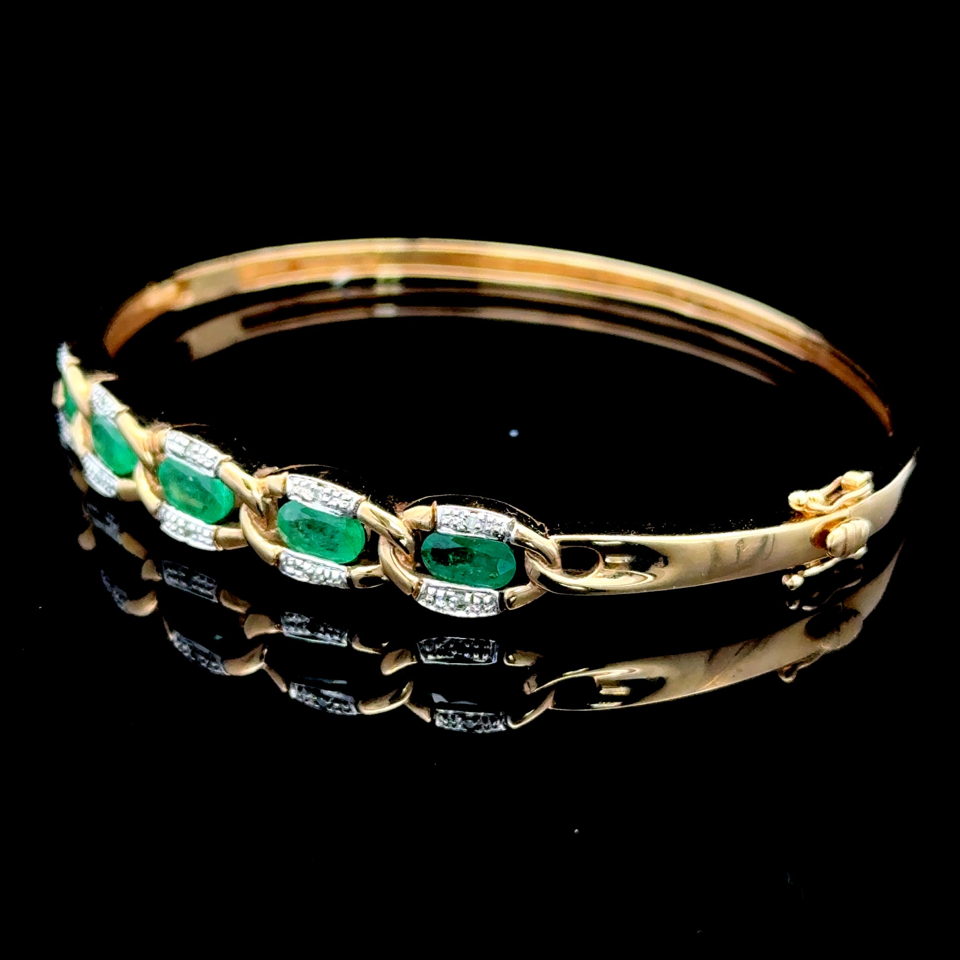 9K Yellow Gold 5 Emerald & Diamond Bangle