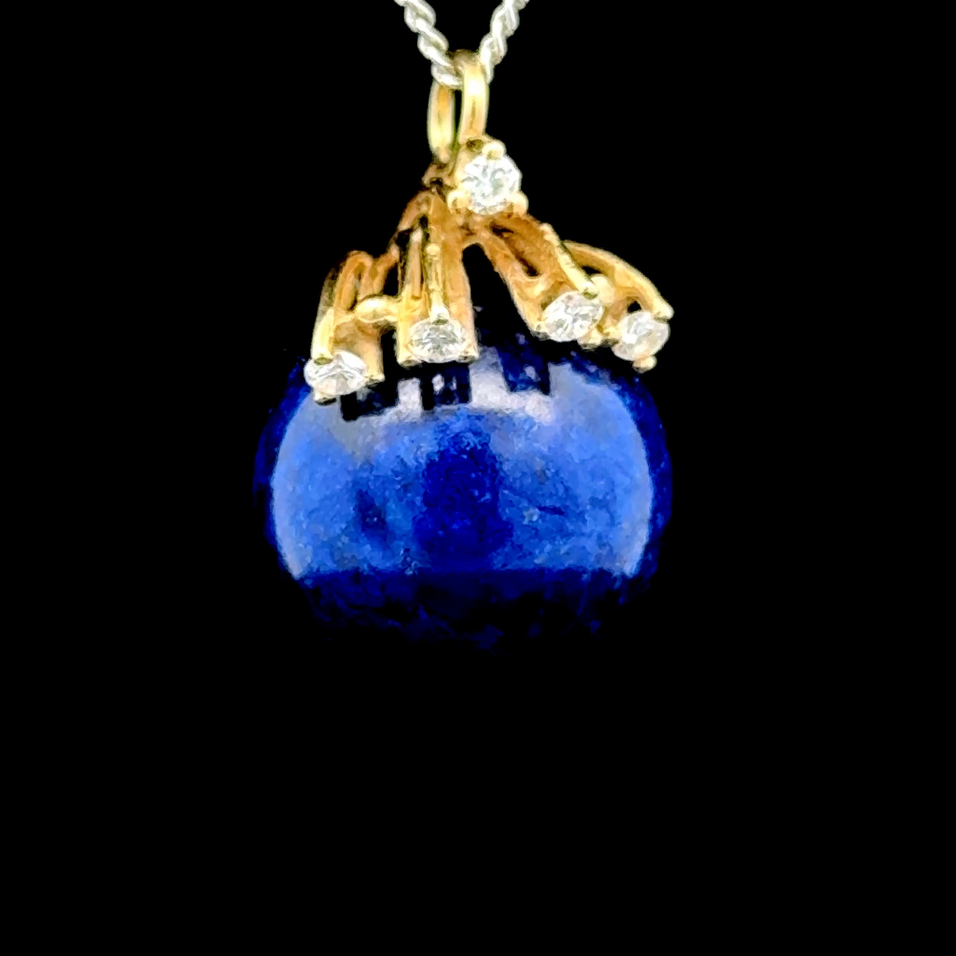 14K Yellow Gold Diamond & Lapis Ball Pendant